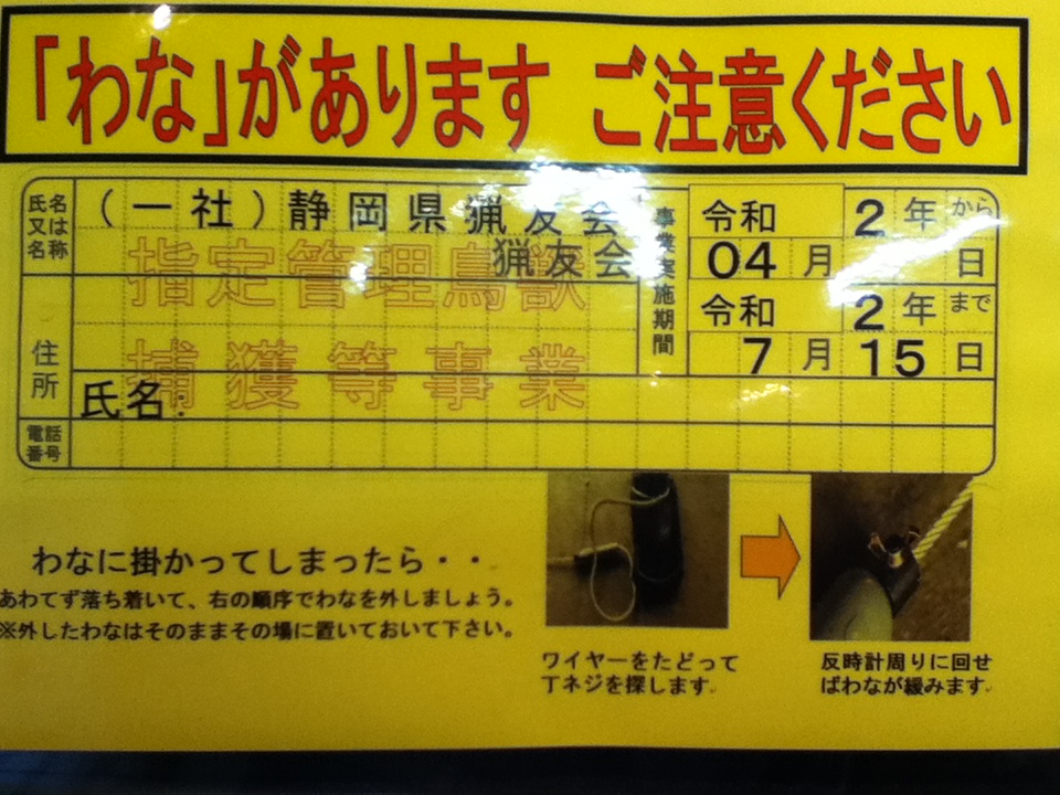 さて、本日は須山猟友会より裾野市の依頼でシカ等鳥獣の捕獲を当別荘に隣接します