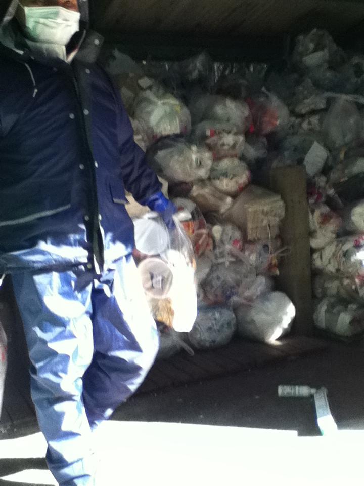 月に2~3回実施している、パッカー車へのゴミの積み込み作業。
