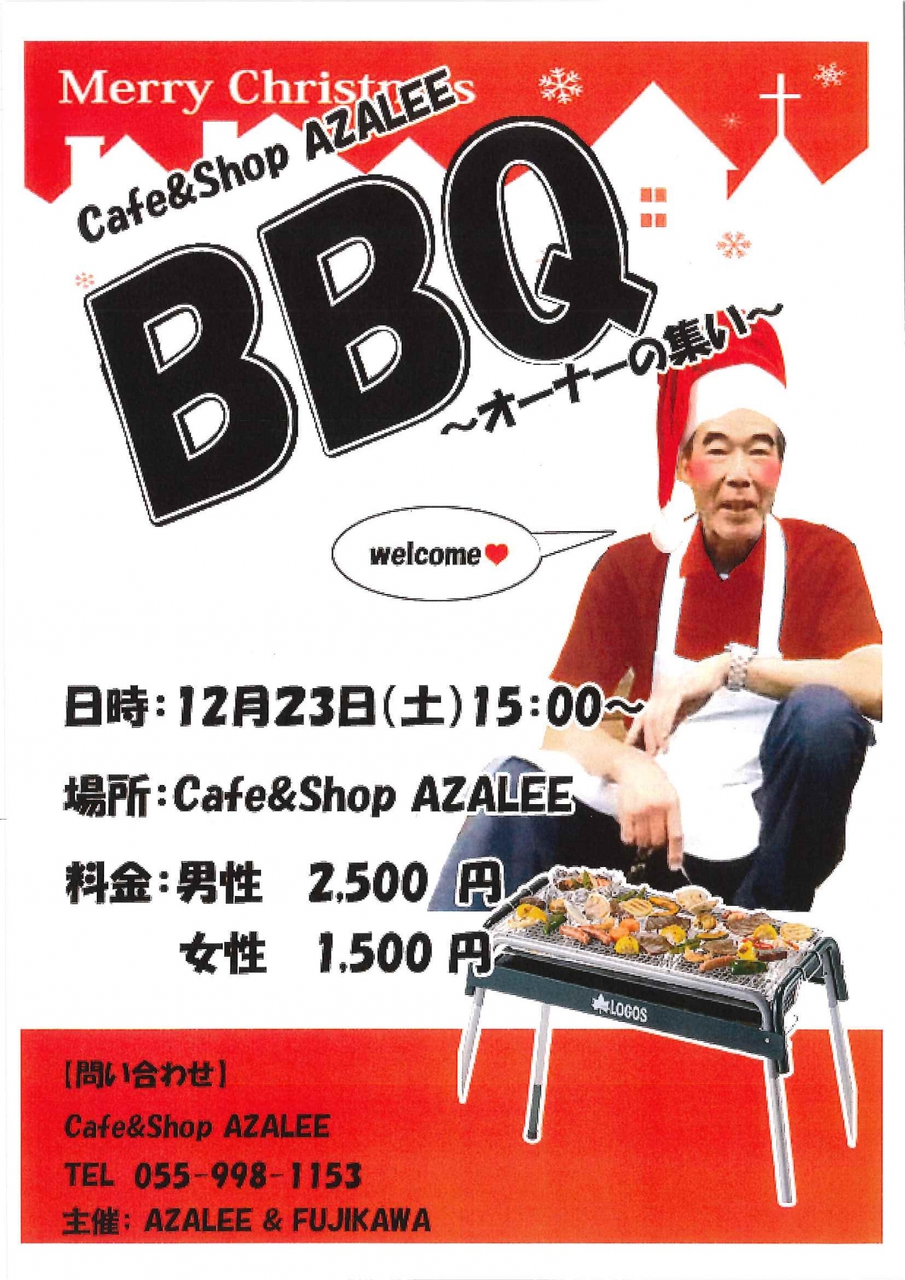 12月23日(土)オーナー様主催により、アザレにて”「クリスマスBBQパーティー”を開催いたします。