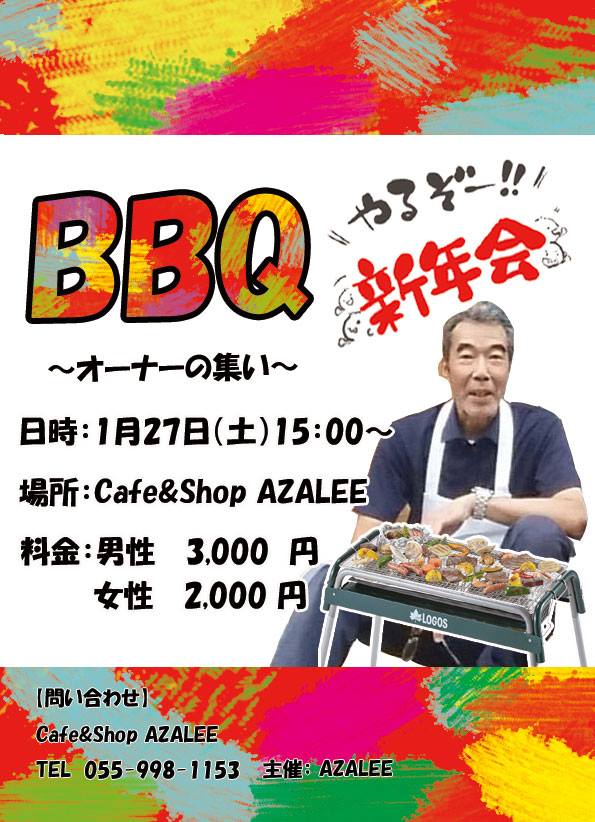 1月27日(土)オーナー様主催により、アザレにて”新年会BBQパーティー”を、開催いたします。
