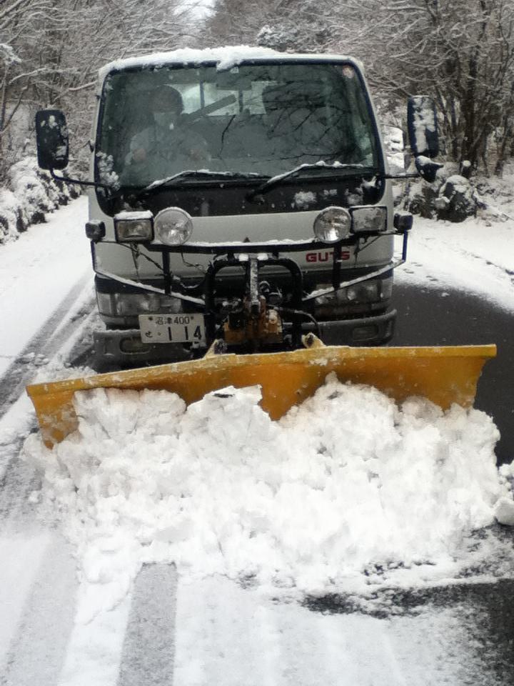 昨夜からの雪が荘内路面に積もっているため、午前中に