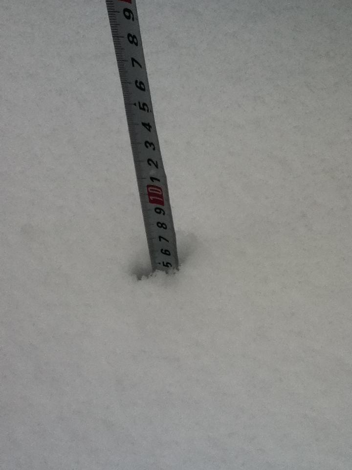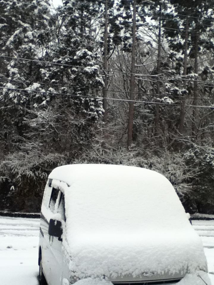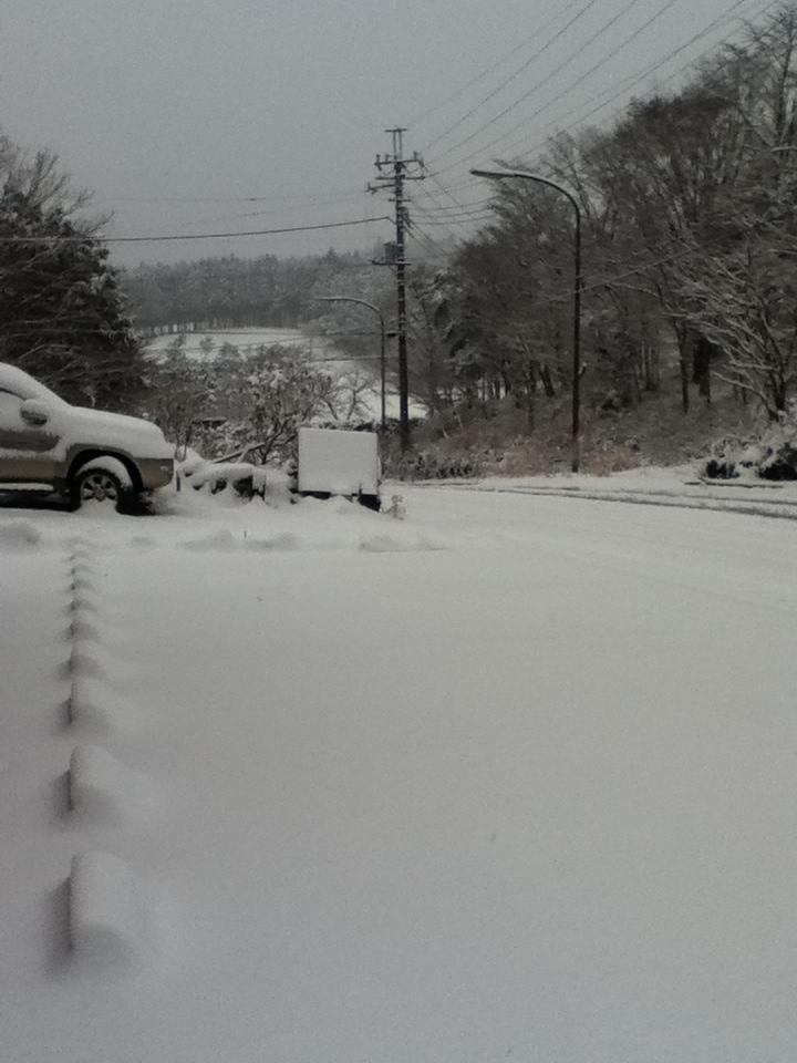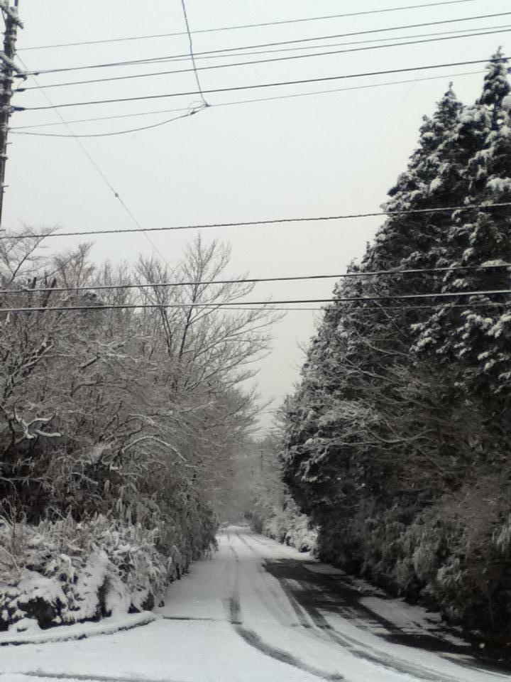 上記の写真の通り、昨夜からの雪が多いところで10㎝以上積もっています。荘内、公道共に積雪により交通不安