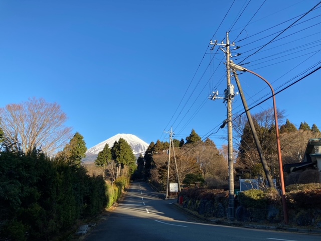 富士山は、くぼみ箇所の雪が溶けたのが見えます。
