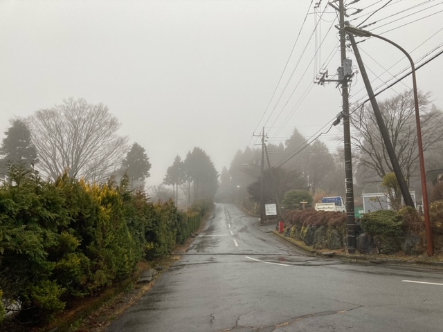 雨と霧がかかって暗いです。予報だと午後から晴れるようです。