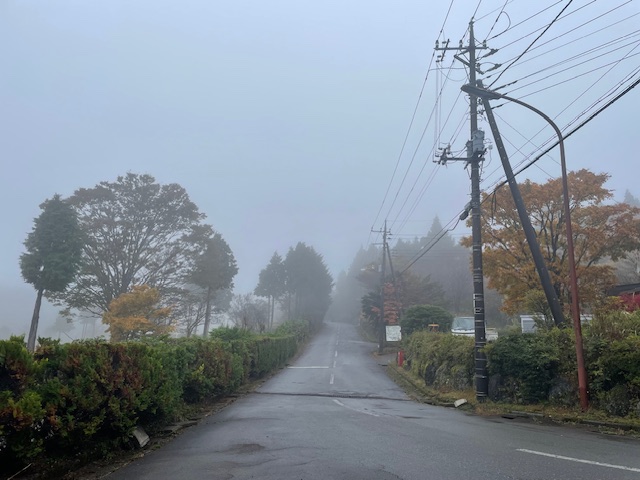 今日の富士山は見えません。朝から霧が発生しています。運転の際はお気をつけてください。